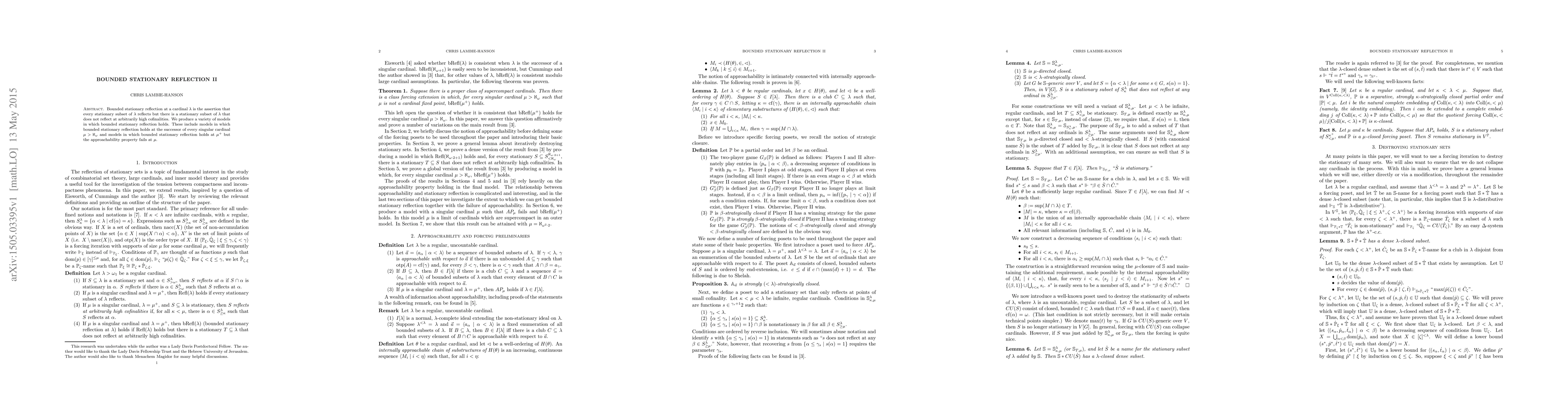 Summary: This paper explores models where bounded stationary reflection holds, demonstrating its existence at the successor of singular cardinals greater than $\aleph_\omega$ and at $\mu^+$ despite the failure of the approachability property at $\mu$.