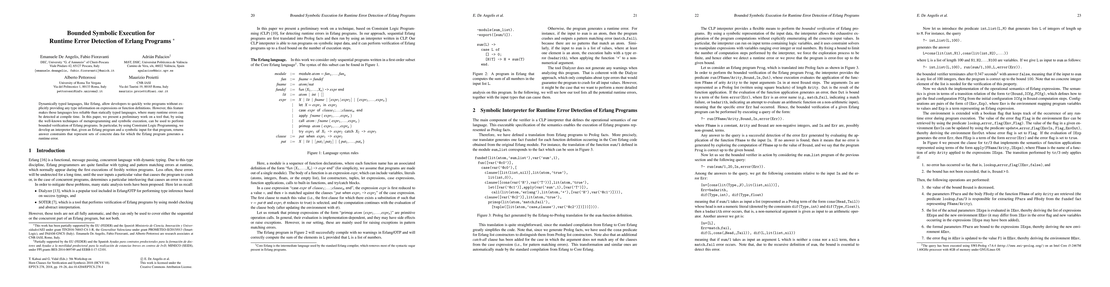 This paper introduces a tool for runtime error detection in Erlang programs using bounded symbolic execution and metaprogramming. The tool leverages Constraint Logic Programming to generate answer constraints that identify sets of inputs causing runtime errors, enhancing reliability in dynamically typed languages.