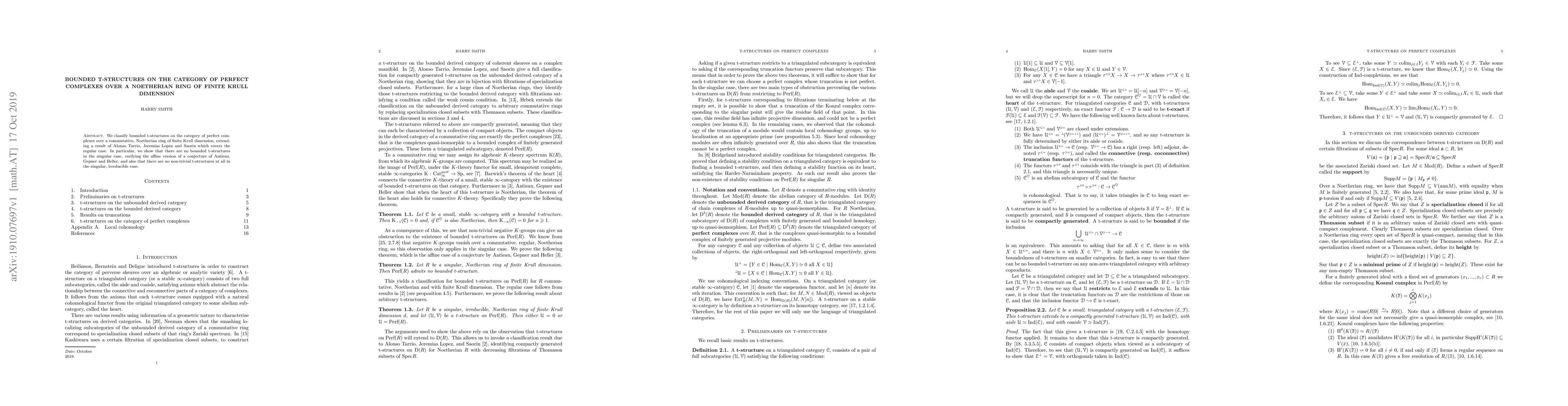 The paper classifies bounded t-structures in the category of perfect complexes over commutative Noetherian rings of finite Krull dimension, proving no such structures exist in singular cases, thus verifying a conjecture for affine varieties. It extends previous results from the regular case.