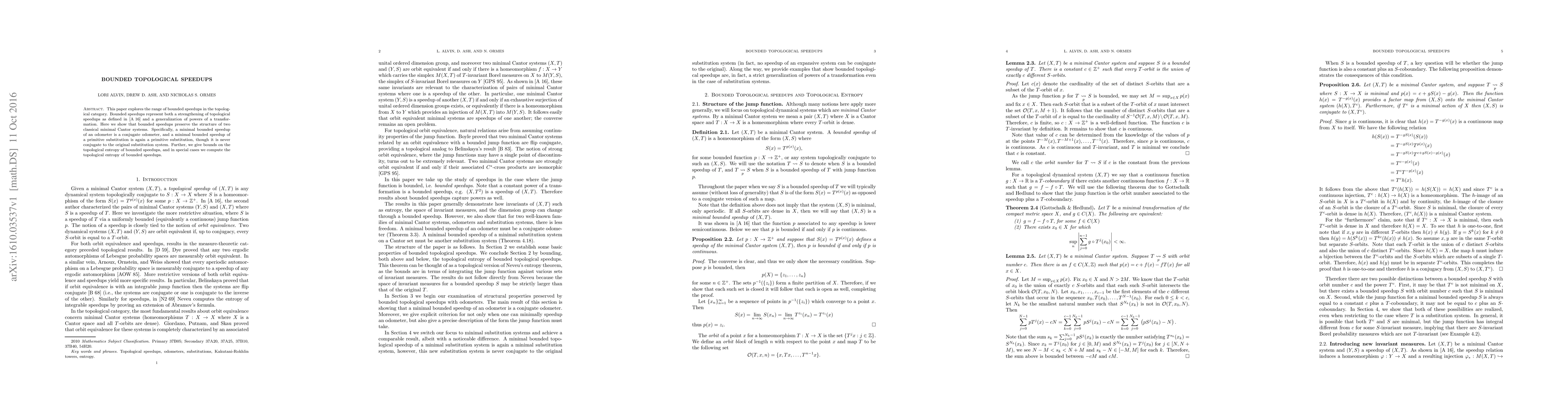This paper investigates bounded speedups in topological systems, demonstrating they preserve the structure of minimal Cantor systems and providing bounds on their topological entropy. It shows that bounded speedups of odometers and primitive substitutions remain non-conjugate yet retain their respective system types.