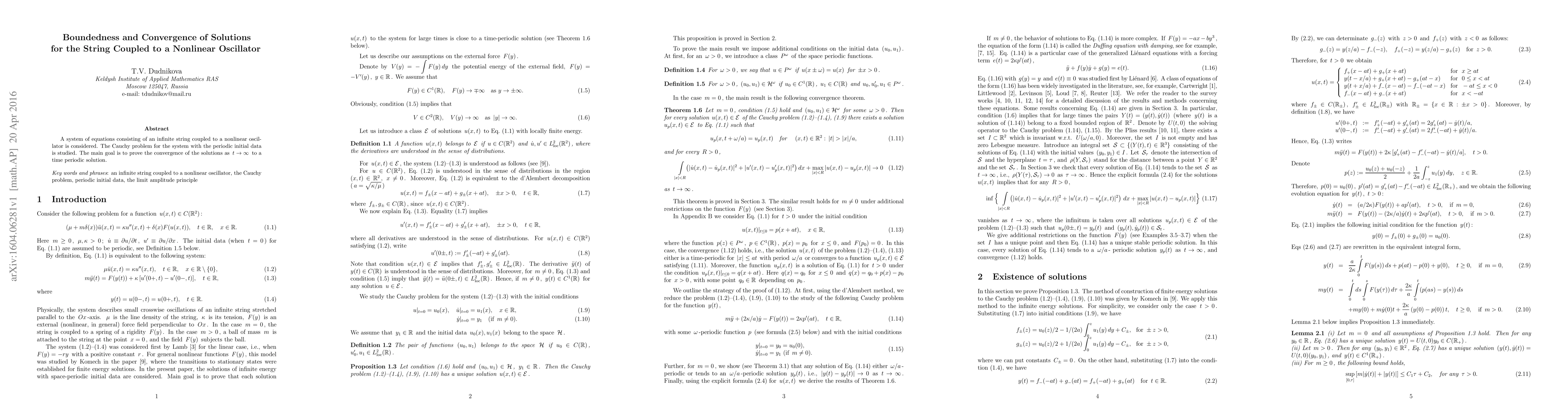 Researchers studied a system of equations for an infinite string coupled to a nonlinear oscillator, proving convergence of solutions to a time periodic solution as time approaches infinity.