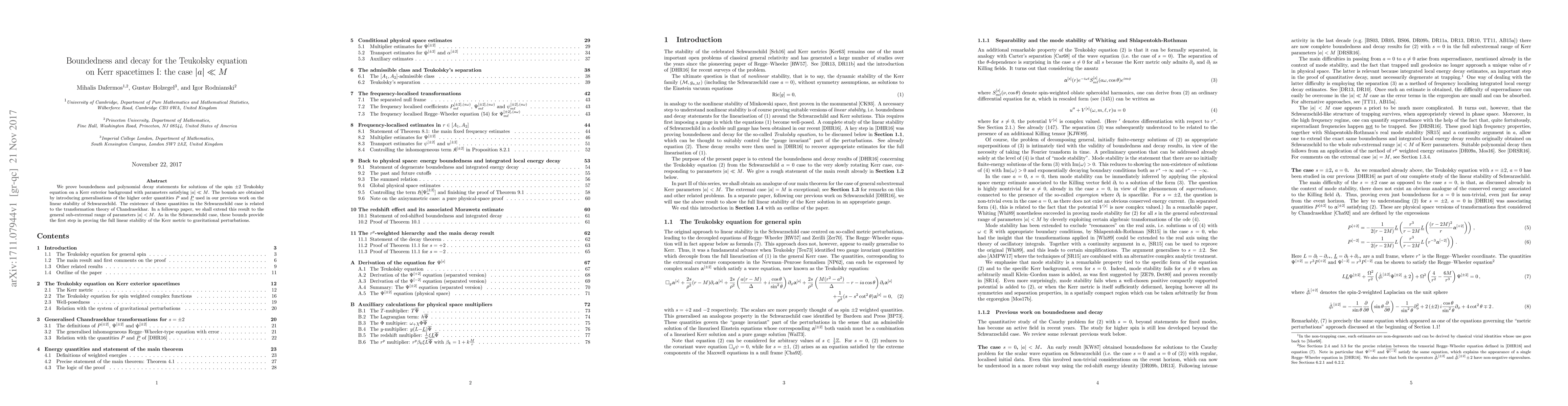 This paper proves boundedness and polynomial decay for solutions of the spin ±2 Teukolsky equation on a Kerr spacetime where the angular momentum parameter $|a|$ is much smaller than the mass $M$. The results are achieved by generalizing quantities $P$ and $\underline{P}$ from previous work on Schwarzschild, leveraging Chandrasekhar's transformation theory.