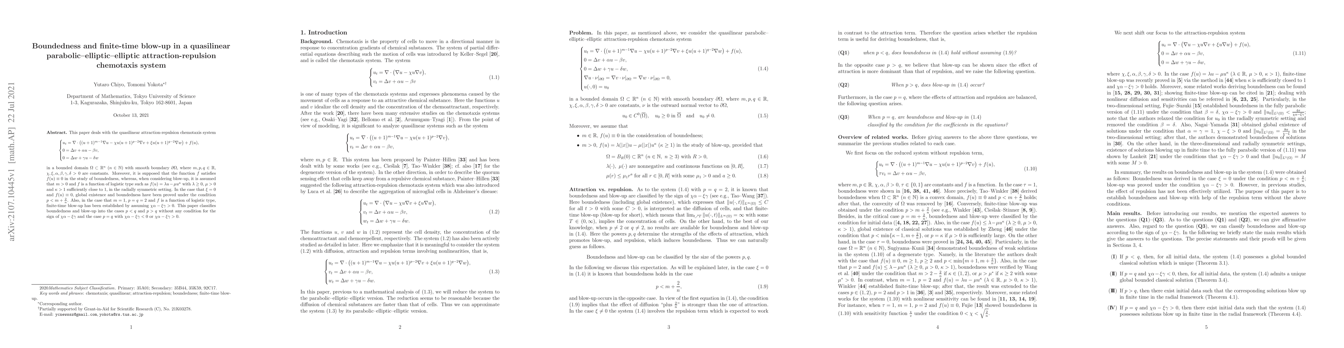 This paper investigates the quasilinear chemotaxis system, focusing on boundedness and finite-time blow-up scenarios. It classifies the behavior based on the parameters $p$ and $q$, proving global existence and boundedness when $p<m+2/n$ and establishing finite-time blow-up under certain conditions.