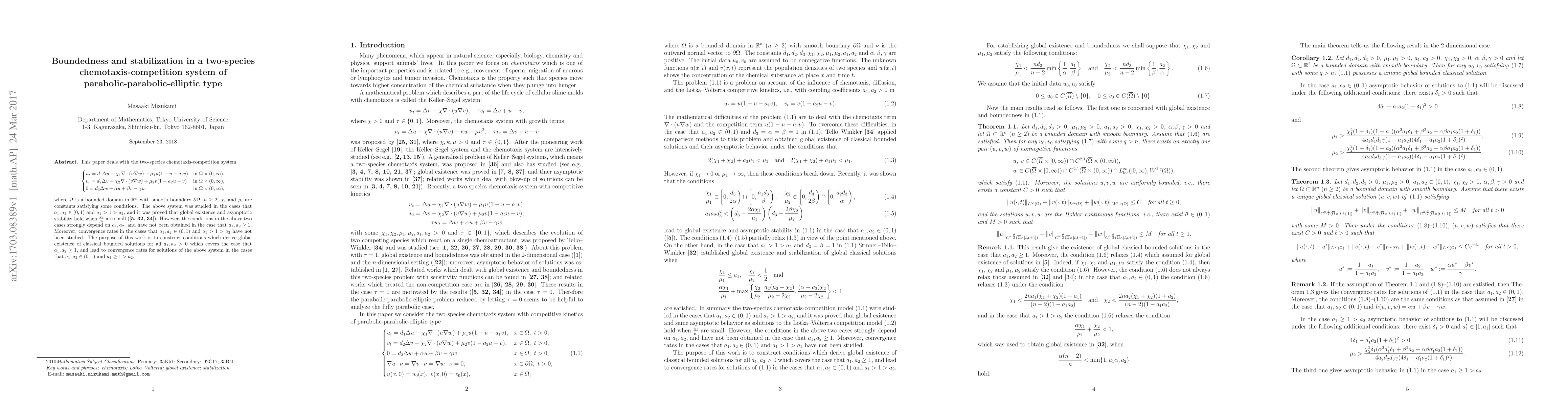 This paper deals with the two-species chemotaxis-competition system $u_t = d_1 \Delta u - \chi_1 \nabla \cdot (u \nabla w) + \mu_1 u(1 - u - a_1 v)$, $v_t = d_2 \Delta v - \chi_2 \nabla \cdot (v \nabla w) + \mu_2 v(1 - a_2 u - v)$, $0 = d_3 \Delta w + \alpha u + \beta v - \gamma w$, where $\Omega$ is a bounded domain in $\mathbb{R}^n$ with smooth boundary, $n\ge 2$; $\chi_i$ and $\mu_i$ are constants satisfying some conditions. The above system was studied in the cases that $a_1,a_2\in (0,1)$ and $a_1>1>a_2$, and it was proved that global existence and asymptotic stability hold when $\frac{\chi_i}{\mu_i}$ are small. However, the conditions in the above two cases strongly depend on $a_1,a_2$, and have not been obtained in the case that $a_1,a_2\ge 1$. Moreover, convergence rates in the cases that $a_1,a_2\in (0,1)$ and $a_1 > 1 > a_2$ have not been studied. The purpose of this work is to construct conditions which derive global existence of classical bounded solutions for all $a_1,a_2>0$ which covers the case that $a_1,a_2 \ge 1$, and lead to convergence rates for solutions of the above system in the cases that $a_1,a_2\in (0,1)$ and $a_1\ge 1 >a_2$.