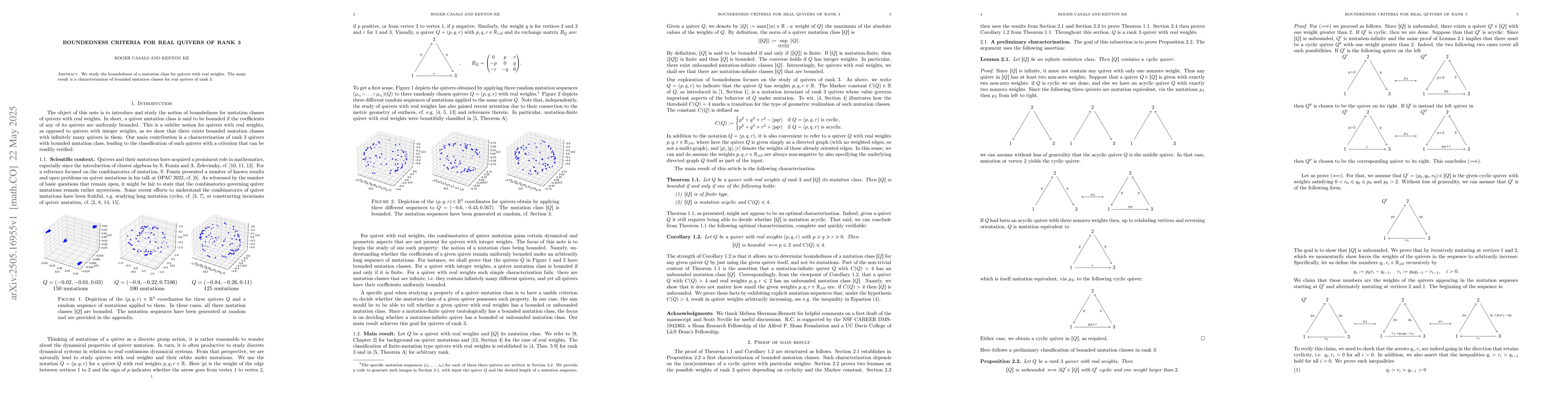 The research employs algebraic methods to study the boundedness of mutation classes for quivers with real weights, focusing on rank 3 cases.