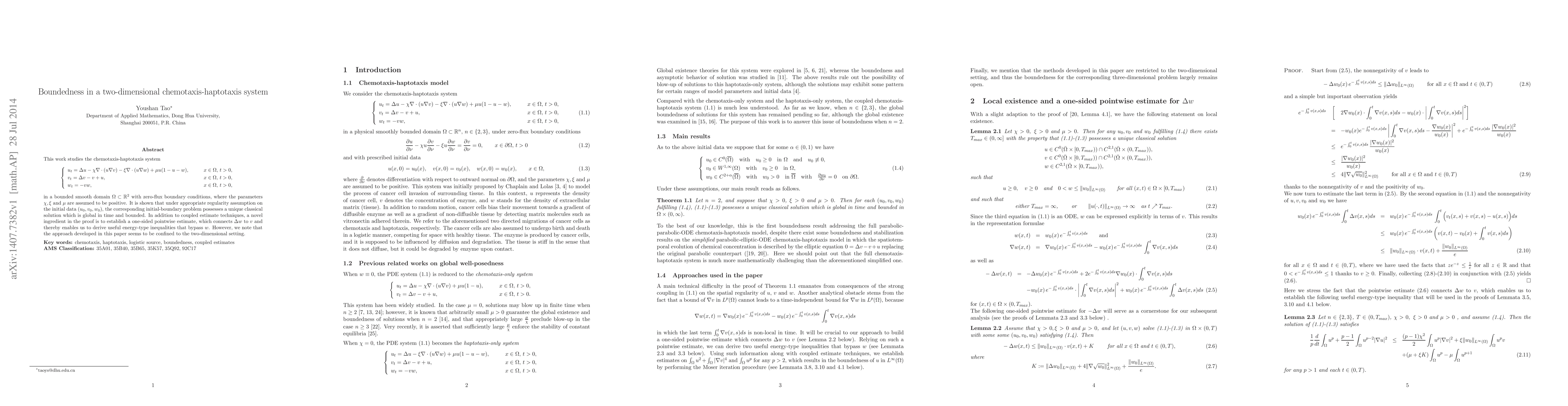This paper investigates a two-dimensional chemotaxis-haptotaxis system with zero-flux boundary conditions, demonstrating the existence of a unique global bounded classical solution under suitable initial conditions. The proof employs coupled estimate techniques and a novel one-sided pointwise estimate to establish energy-type inequalities.