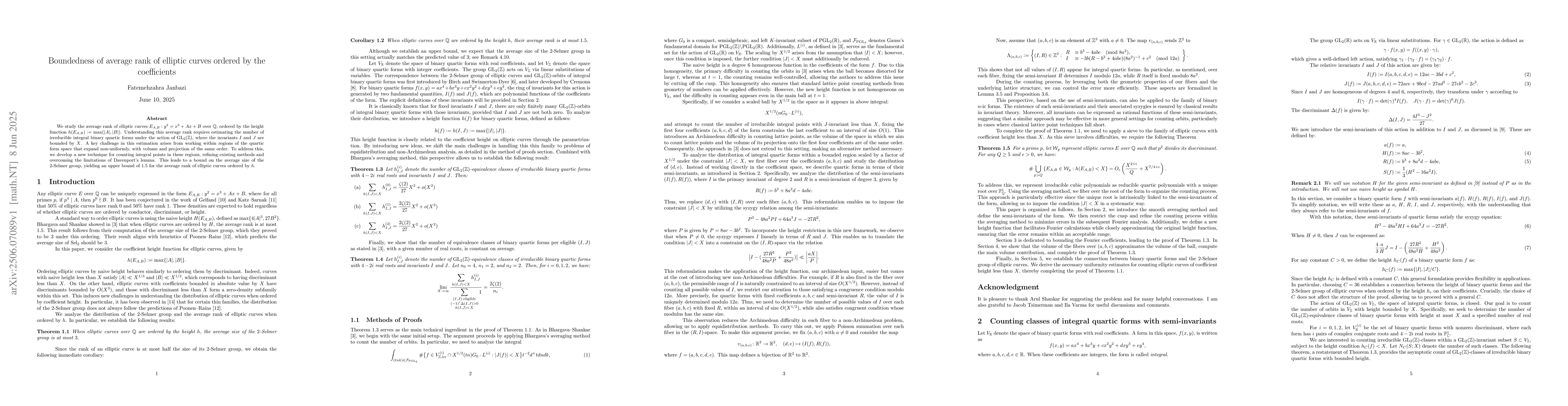 The average rank of elliptic curves ordered by coefficients is bounded at 1.5, which is an improvement over existing estimates. This achievement relies on a new technique for counting integral points in specific regions of the quartic form space.