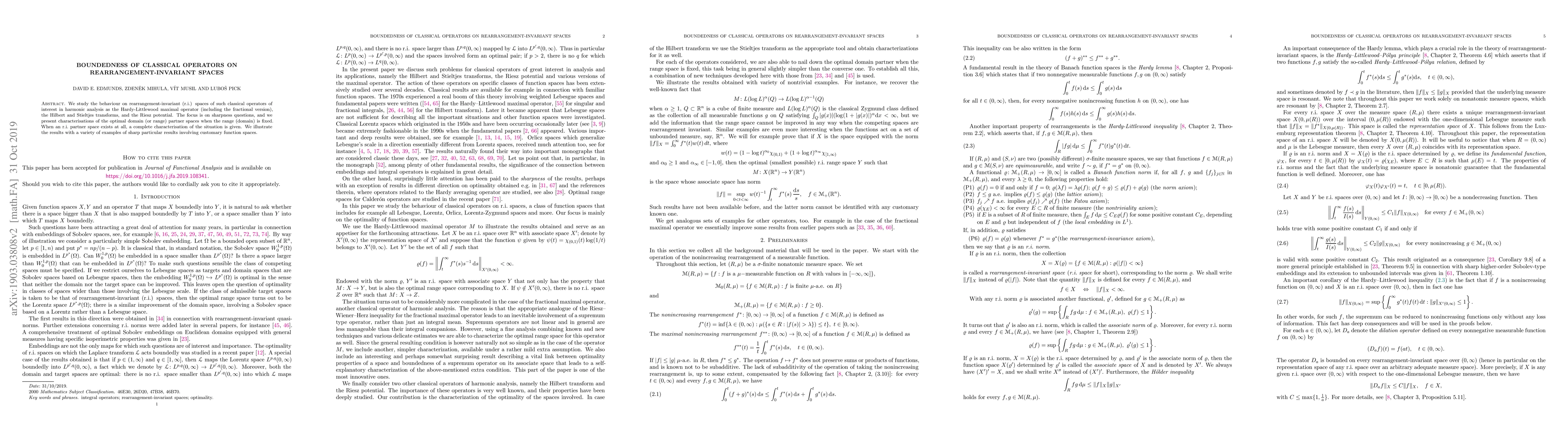 This paper investigates the boundedness of classical operators like the Hardy-Littlewood maximal operator, Hilbert and Stieltjes transforms, and Riesz potential on rearrangement-invariant spaces, focusing on the characterization of optimal partner spaces. It provides complete descriptions of these spaces when they exist and illustrates results with examples from standard function spaces.