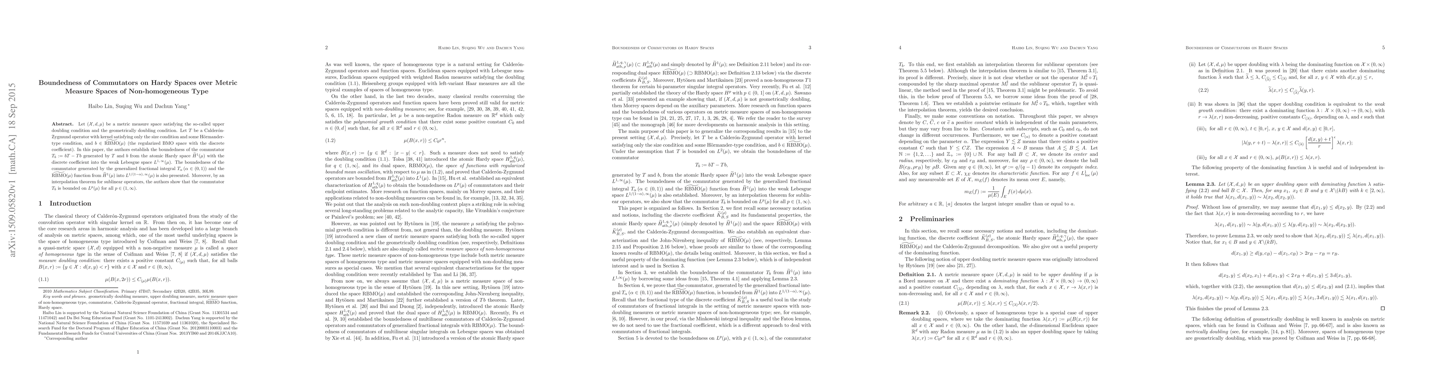 This paper establishes the boundedness of commutators generated by Calderón-Zygmund operators and $\widetilde{RBMO}(\mu)$ functions on Hardy spaces over non-homogeneous metric measure spaces, extending results to weak Lebesgue and $L^p$ spaces via interpolation.