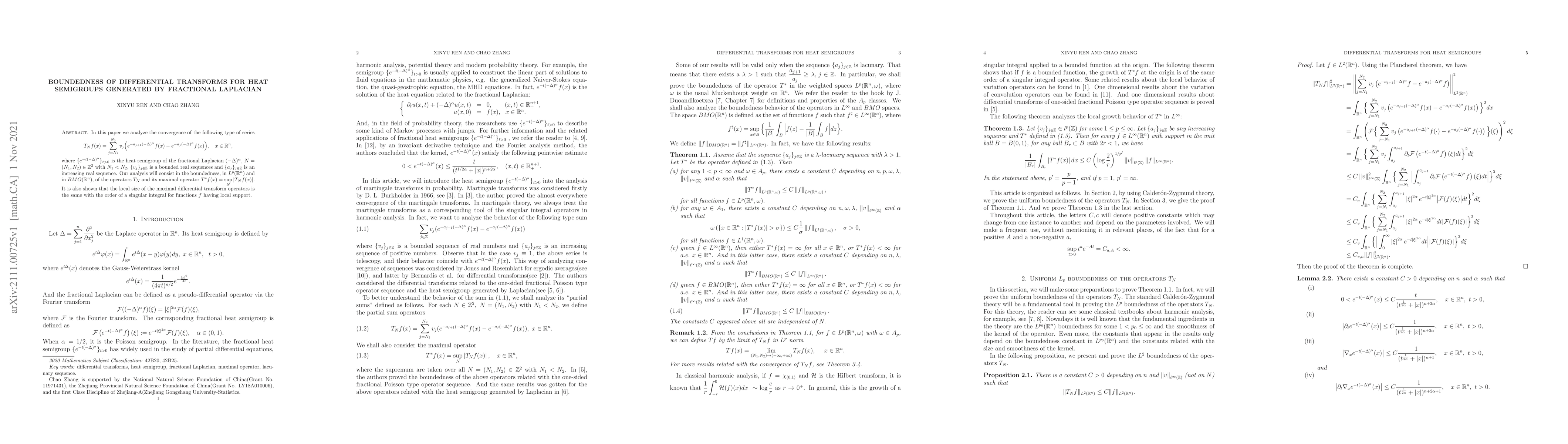 This paper investigates the boundedness of a series of operators for heat semigroups generated by fractional Laplacians, showing convergence in L^p and BMO spaces with comparable local size to singular integrals.
