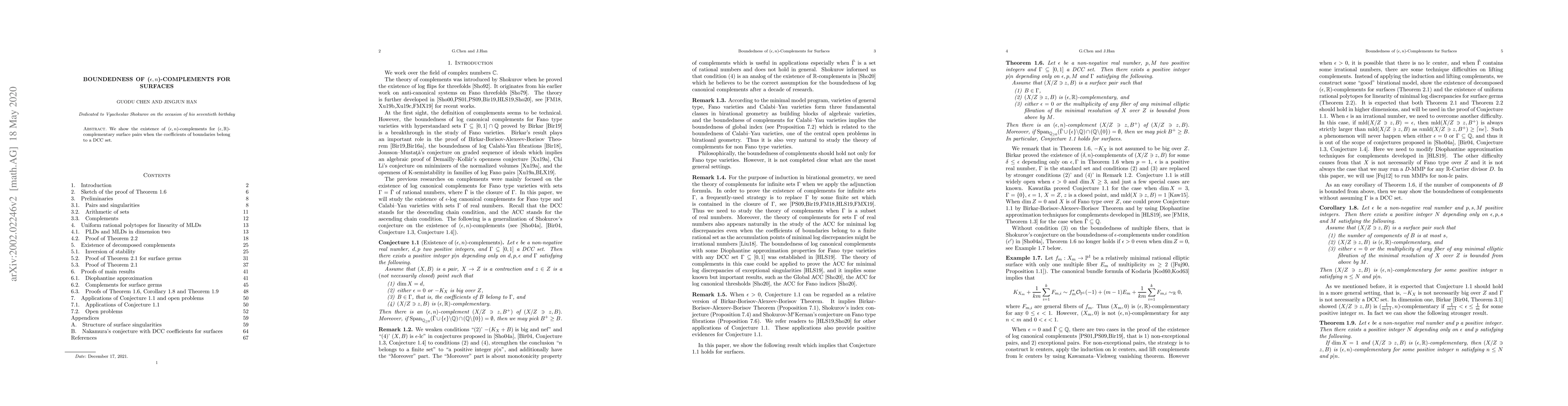 Summary: This paper demonstrates the existence of $(\epsilon,n)$-complements for $(\epsilon,\mathbb{R})$-complementary surface pairs under the condition that boundary coefficients adhere to a DCC set, establishing boundedness in such configurations.