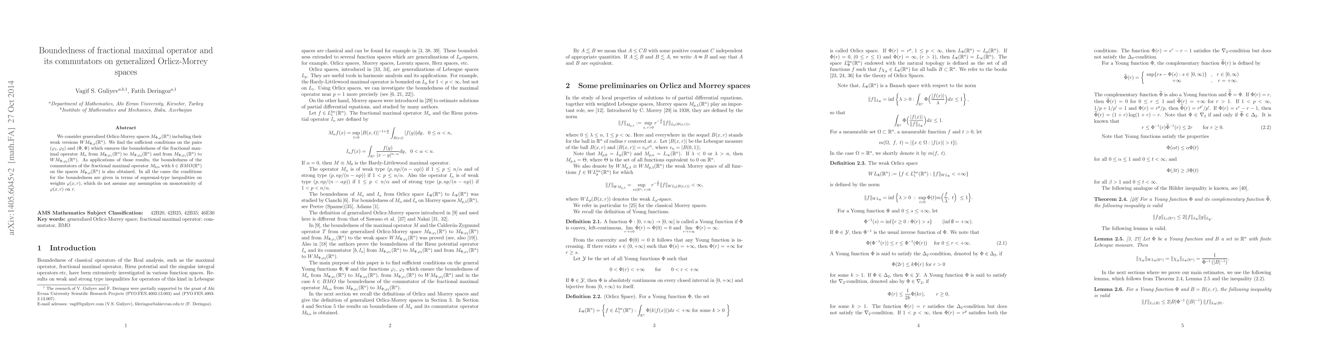 We consider generalized Orlicz-Morrey spaces $M_{\Phi,\varphi}(\mathbb{R}^{n})$ including their weak versions $WM_{\Phi,\varphi}(\mathbb{R}^{n})$. We find the sufficient conditions on the pairs $(\varphi_{1},\varphi_{2})$ and $(\Phi, \Psi)$ which ensures the boundedness of the fractional maximal operator $M_{\alpha}$ from $M_{\Phi,\varphi_1}(\mathbb{R}^{n})$ to $M_{\Psi,\varphi_2}(\mathbb{R}^{n})$ and from $M_{\Phi,\varphi_1}(\mathbb{R}^{n})$ to $WM_{\Psi,\varphi_2}(\mathbb{R}^{n})$. As applications of those results, the boundedness of the commutators of the fractional maximal operator $M_{b,\alpha}$ with $b \in BMO(\mathbb{R}^{n})$ on the spaces $M_{\Phi,\varphi}(\mathbb{R}^{n})$ is also obtained. In all the cases the conditions for the boundedness are given in terms of supremal-type inequalities on weights $\varphi(x,r)$, which do not assume any assumption on monotonicity of $\varphi(x,r)$ on $r$.