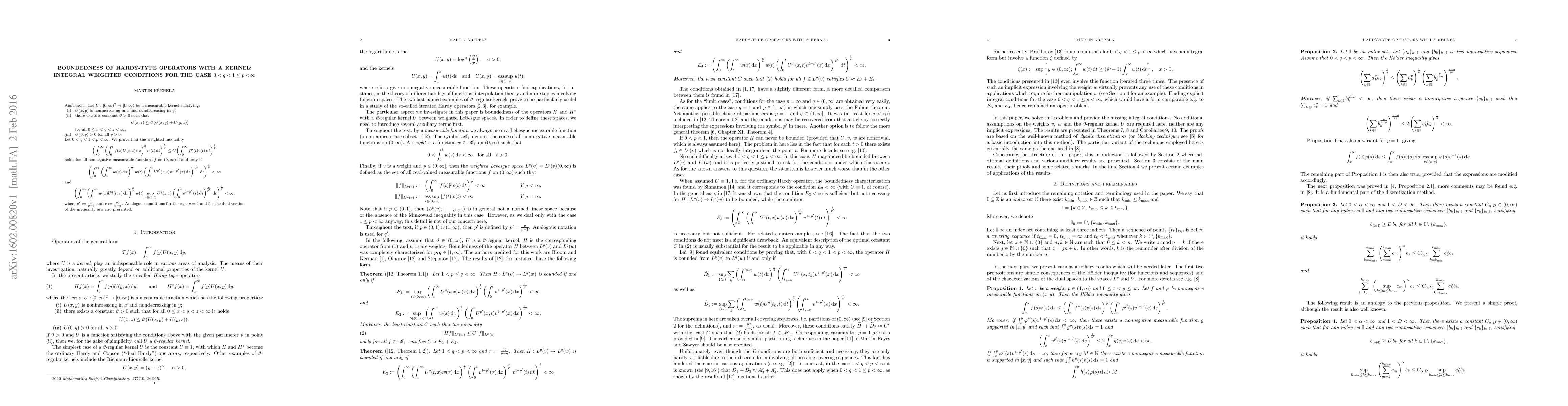 A new condition for boundedness of Hardy-type operators with a kernel has been derived for $0<q<1 e p<ty$, providing weighted inequality conditions for their boundedness.