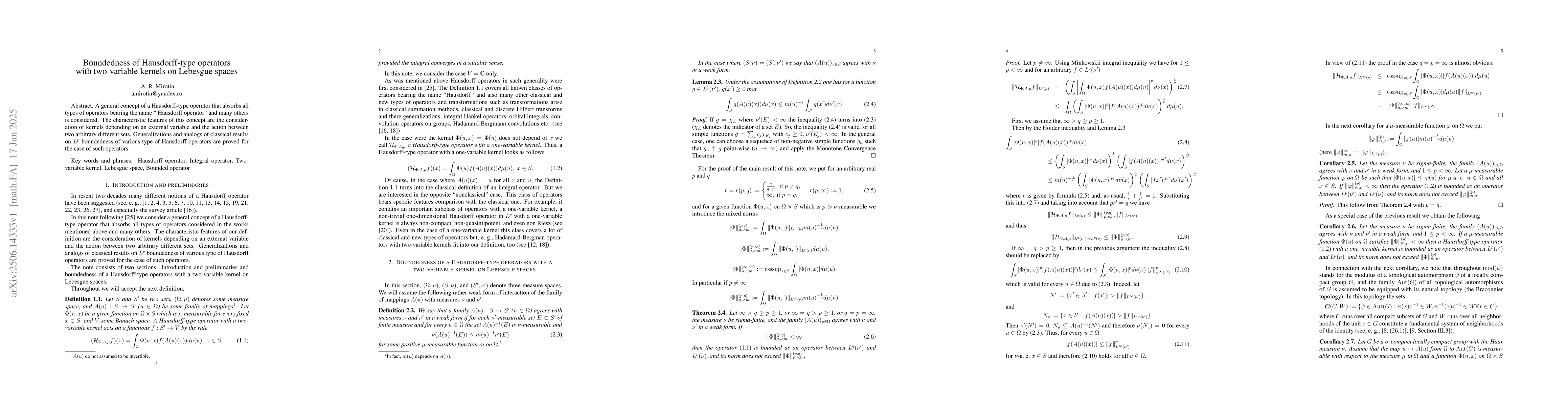 This paper introduces a broadened Hausdorff-type operator concept, incorporating kernels dependent on an additional variable and functioning between distinct sets. It proves generalized $L^p$ boundedness theorems for these operators, extending classical results on Hausdorff operators and their variants.