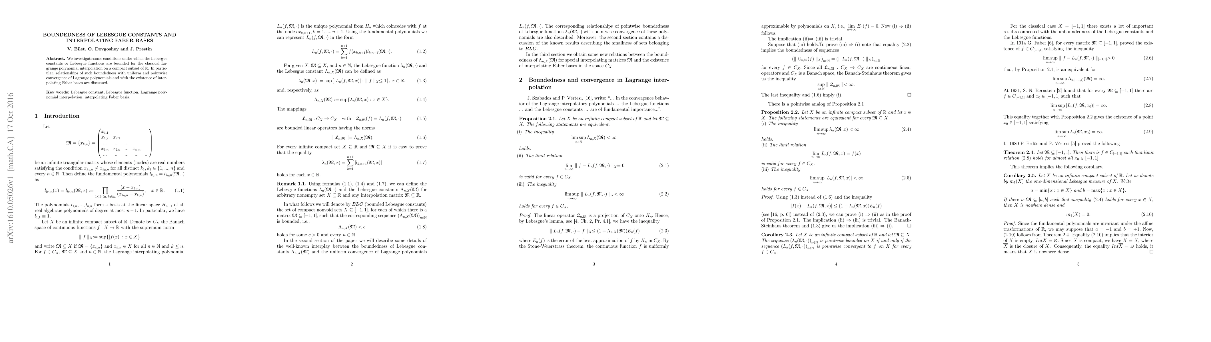 Summary: This study explores conditions ensuring bounded Lebesgue constants in Lagrange polynomial interpolation on compact subsets of $\mathbb R$, linking such bounds to convergence properties of the polynomials and the presence of interpolating Faber bases.
