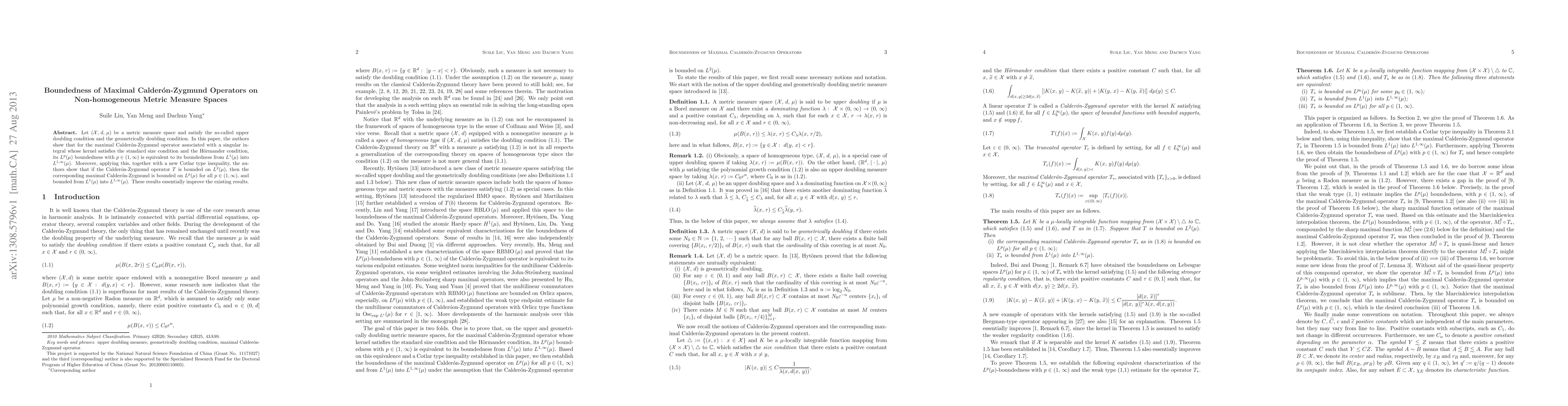 The paper proves that for certain metric measure spaces, maximal Calderon-Zygmund operators have equivalent boundedness on L^p spaces for 1 < p < infinity and from L^1 to L^{1,ty} spaces.