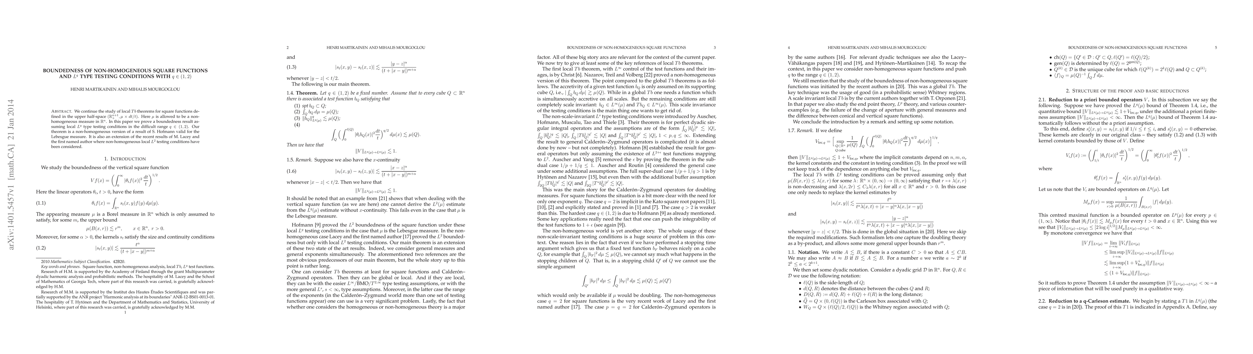 Researchers prove a boundedness result for non-homogeneous square functions in the upper half-space under local $L^q$ type testing conditions for $q otin (1,2)$.