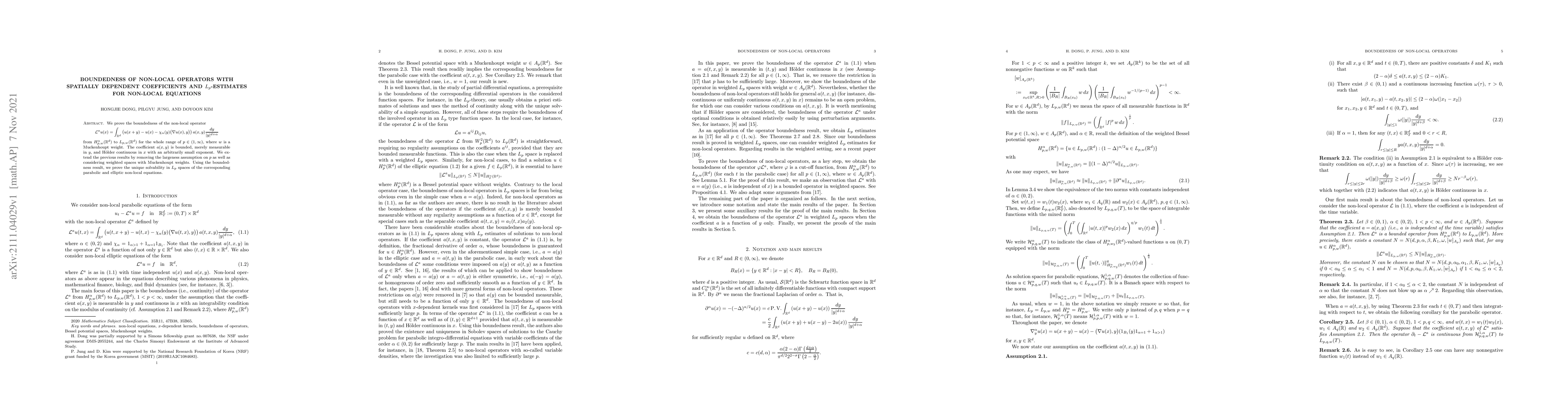 This research establishes boundedness of non-local operators with measurable, spatially dependent coefficients in weighted spaces, extending previous results to all $p$ in $(1,infty)$. This leads to unique solvability of corresponding non-local parabolic and elliptic equations in $L_p$ spaces.