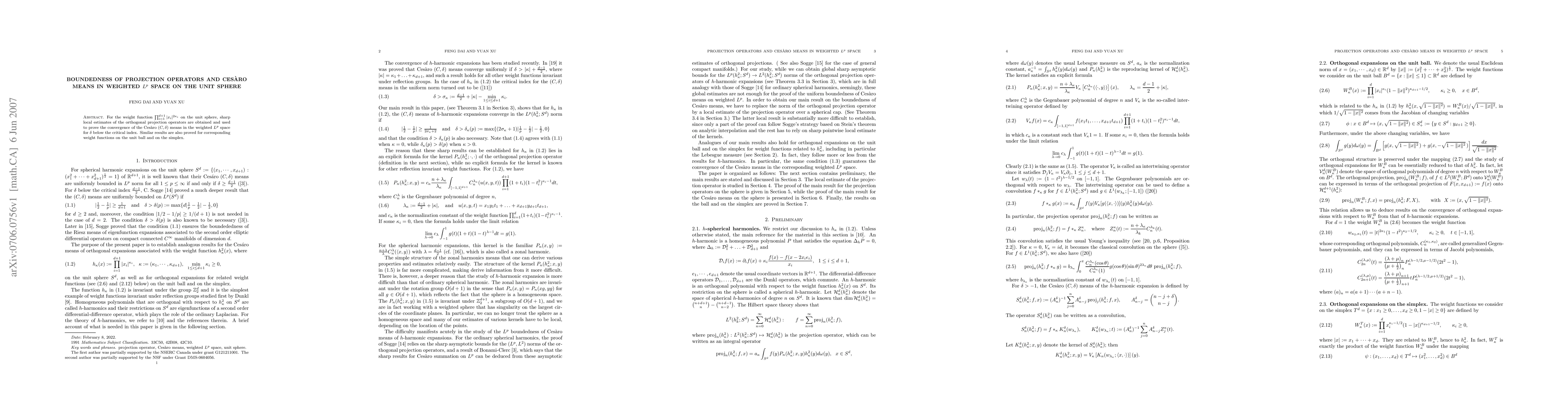 This paper establishes sharp local estimates for orthogonal projection operators on the unit sphere with a specific weight function, and uses these estimates to demonstrate the convergence of Cesàro means in weighted $L^p$ spaces below the critical index. Similar results are derived for weight functions on the unit ball and the simplex.