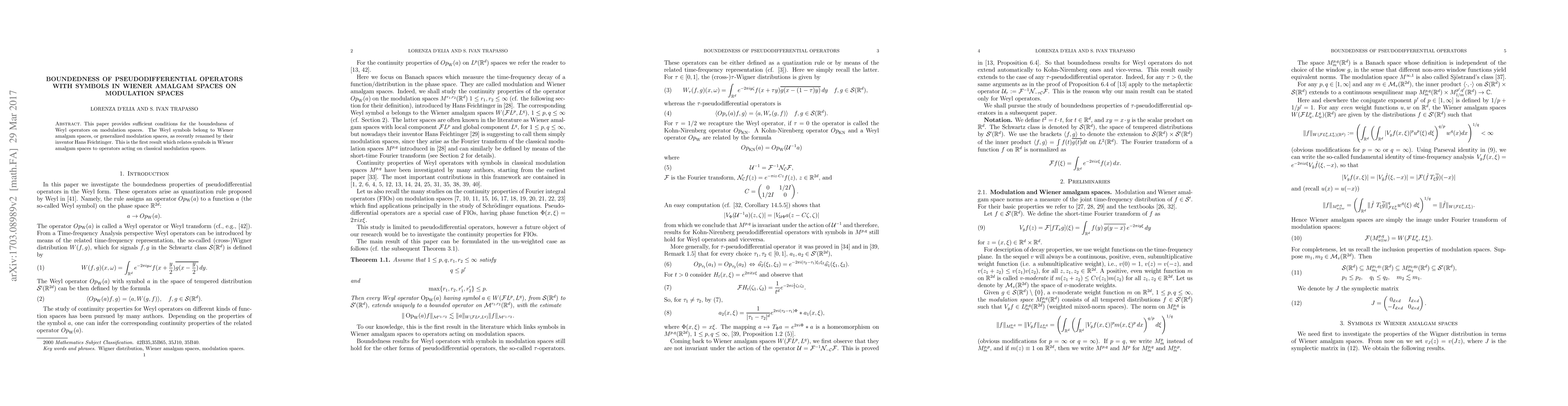 This paper establishes sufficient conditions for the boundedness of Weyl operators whose symbols lie in Wiener amalgam spaces on modulation spaces. It is the first to link symbols from these generalized modulation spaces to operators on classical modulation spaces.