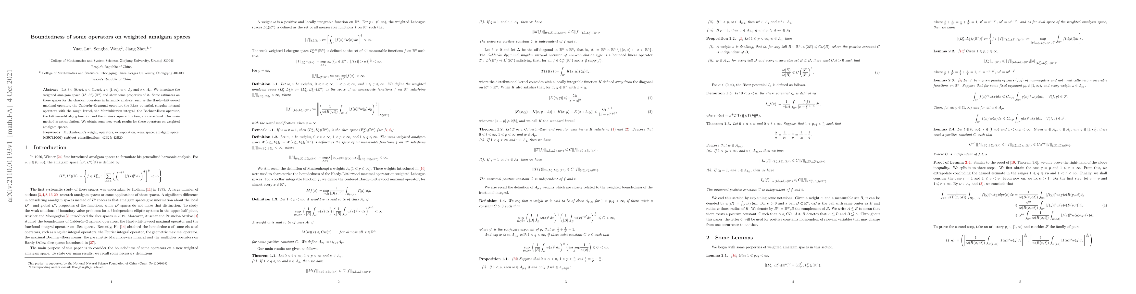 This paper introduces the weighted amalgam space $(L^p,L^q)_t(\mathbb R^n)$ and explores its properties. It provides estimates for various harmonic analysis operators on these spaces, employing extrapolation methods to derive new weak results.