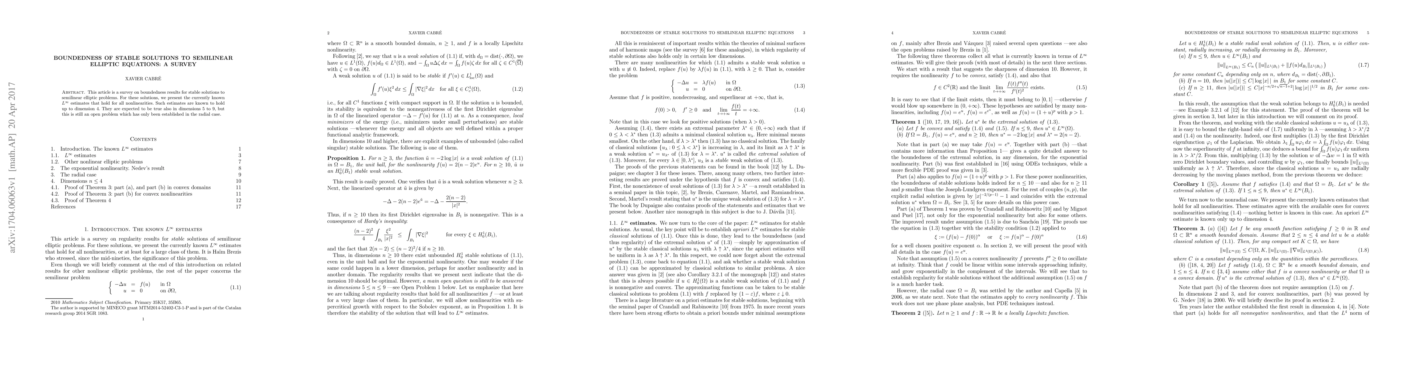 This survey discusses $L^{\infty}$ estimates for stable solutions to semilinear elliptic equations, showing known boundedness results up to dimension 4, with open questions remaining for dimensions 5 to 9, except for the radial case.