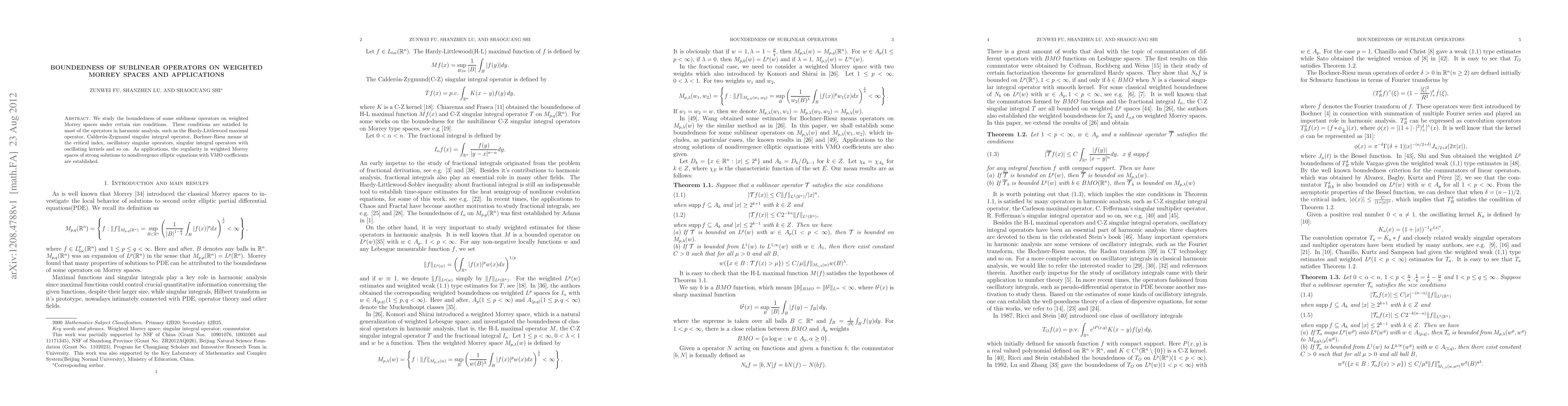 This paper investigates the boundedness of various sublinear operators on weighted Morrey spaces under specific size conditions. The results apply to operators in harmonic analysis, including the Hardy-Littlewood maximal operator and Calderón-Zygmund operators. The study also establishes regularity properties for strong solutions to nondivergence elliptic equations with VMO coefficients in weighted Morrey spaces.
