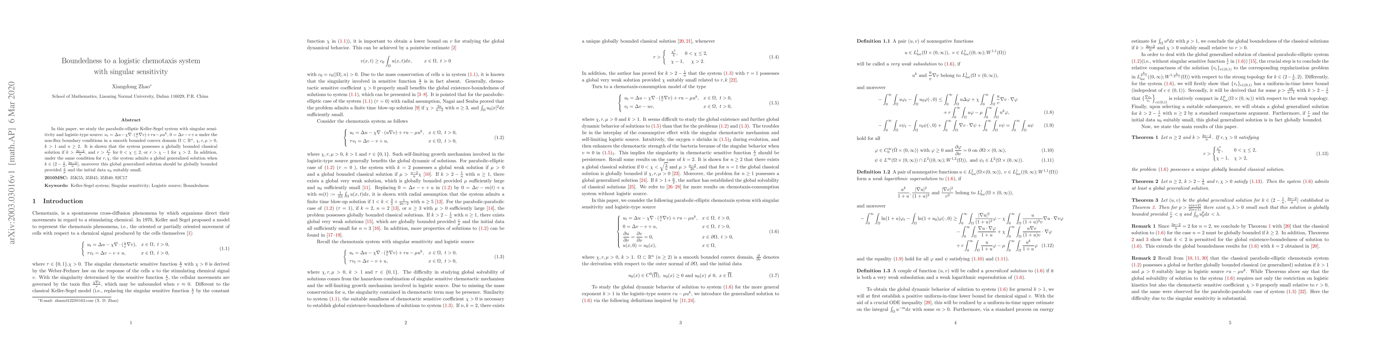 This paper studies a Keller-Segel system with singular sensitivity and logistic-type source, finding that it possesses globally bounded classical solutions under certain conditions on parameters k, r, and η.
