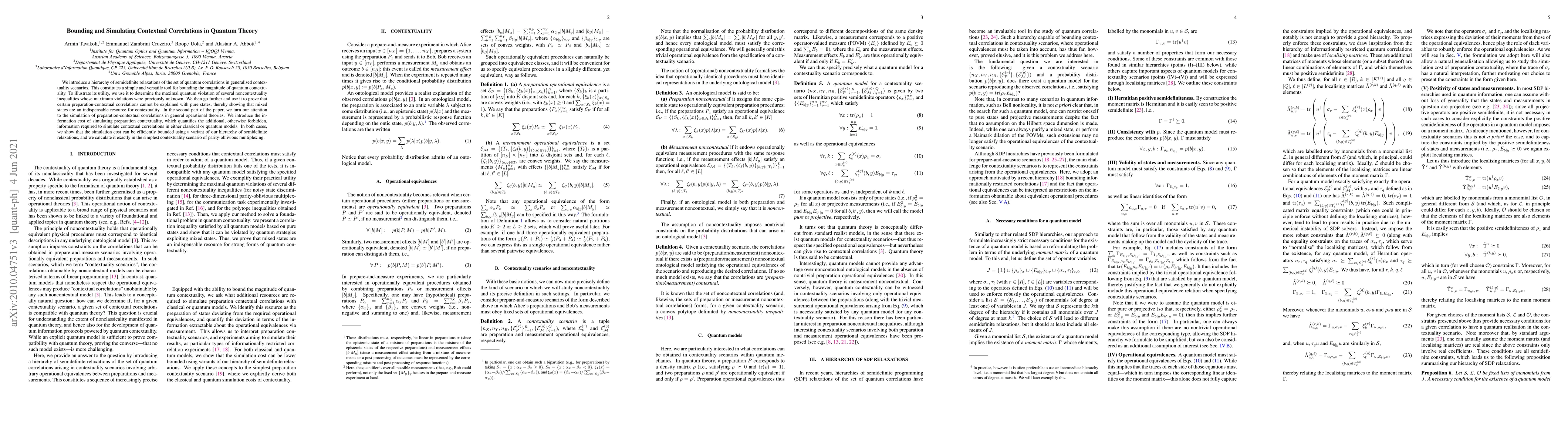 This paper presents semidefinite relaxations to bound quantum contextuality and determine maximal quantum violations of noncontextuality inequalities. It also explores the simulation cost of preparation-contextual correlations in operational theories, showing that mixed states are essential for contextuality and introducing a method to efficiently bound the simulation cost.