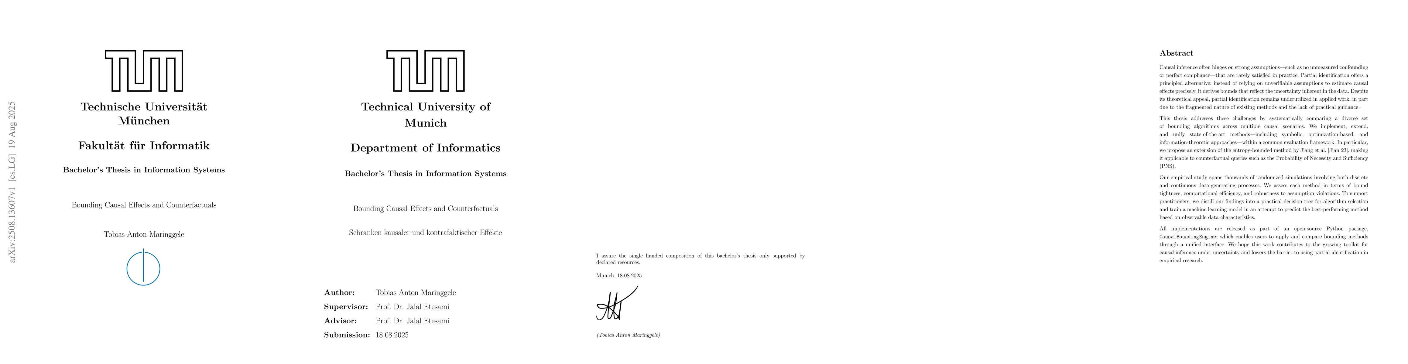 Causal inference often hinges on strong assumptions - such as no unmeasured confounding or perfect compliance - that are rarely satisfied in practice. Partial identification offers a principled alternative: instead of relying on unverifiable assumptions to estimate causal effects precisely, it derives bounds that reflect the uncertainty inherent in the data. Despite its theoretical appeal, partial identification remains underutilized in applied work, in part due to the fragmented nature of existing methods and the lack of practical guidance. This thesis addresses these challenges by systematically comparing a diverse set of bounding algorithms across multiple causal scenarios. We implement, extend, and unify state-of-the-art methods - including symbolic, optimization-based, and information-theoretic approaches - within a common evaluation framework. In particular, we propose an extension of a recently introduced entropy-bounded method, making it applicable to counterfactual queries such as the Probability of Necessity and Sufficiency (PNS). Our empirical study spans thousands of randomized simulations involving both discrete and continuous data-generating processes. We assess each method in terms of bound tightness, computational efficiency, and robustness to assumption violations. To support practitioners, we distill our findings into a practical decision tree for algorithm selection and train a machine learning model to predict the best-performing method based on observable data characteristics. All implementations are released as part of an open-source Python package, CausalBoundingEngine, which enables users to apply and compare bounding methods through a unified interface.