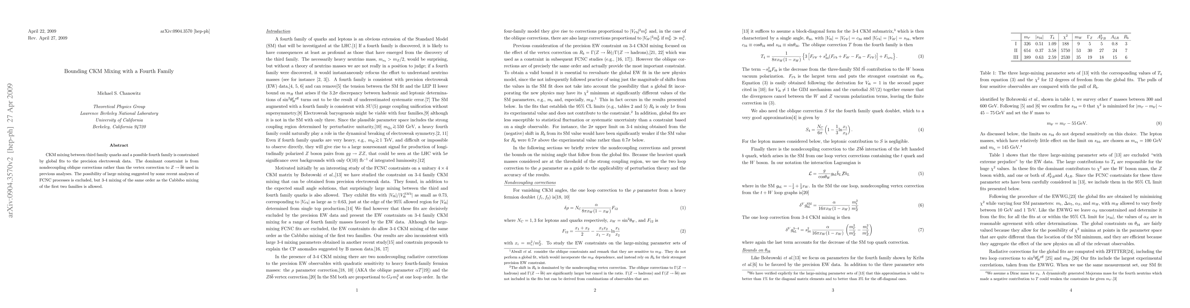 Researchers constrain the mixing between third family quarks and a possible fourth family, excluding large FCNC processes but allowing 3-4 order mixing similar to Cabbibo mixing.