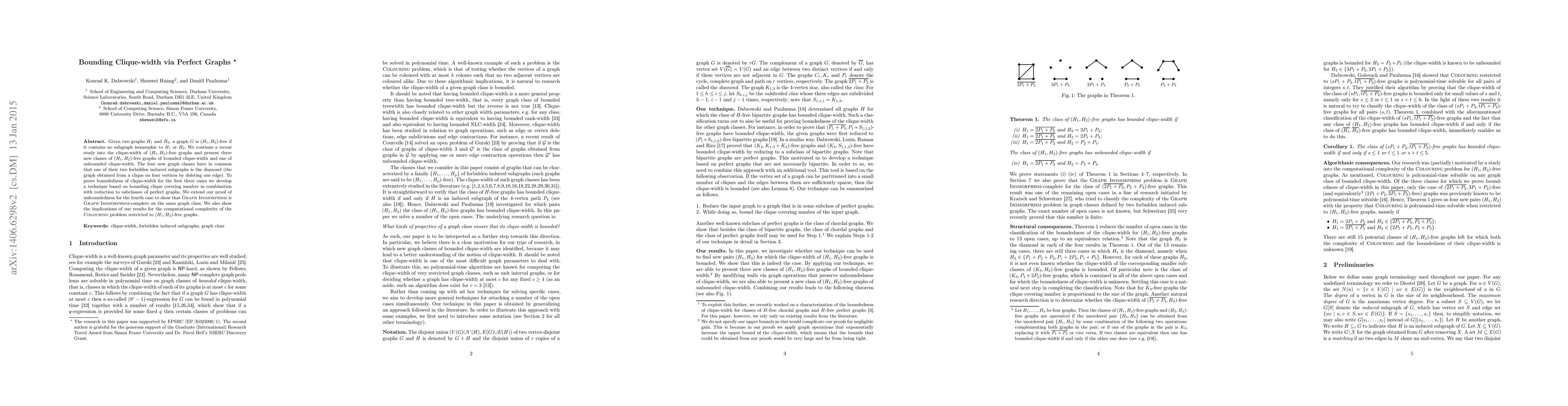 This paper explores the clique-width of graphs that are free of two specific forbidden subgraphs, with one of them being the diamond graph. It identifies three new classes of such graphs with bounded clique-width and develops a technique based on perfect graphs for their proofs. It also demonstrates one class with unbounded clique-width and establishes its complexity for graph isomorphism and colouring problems.