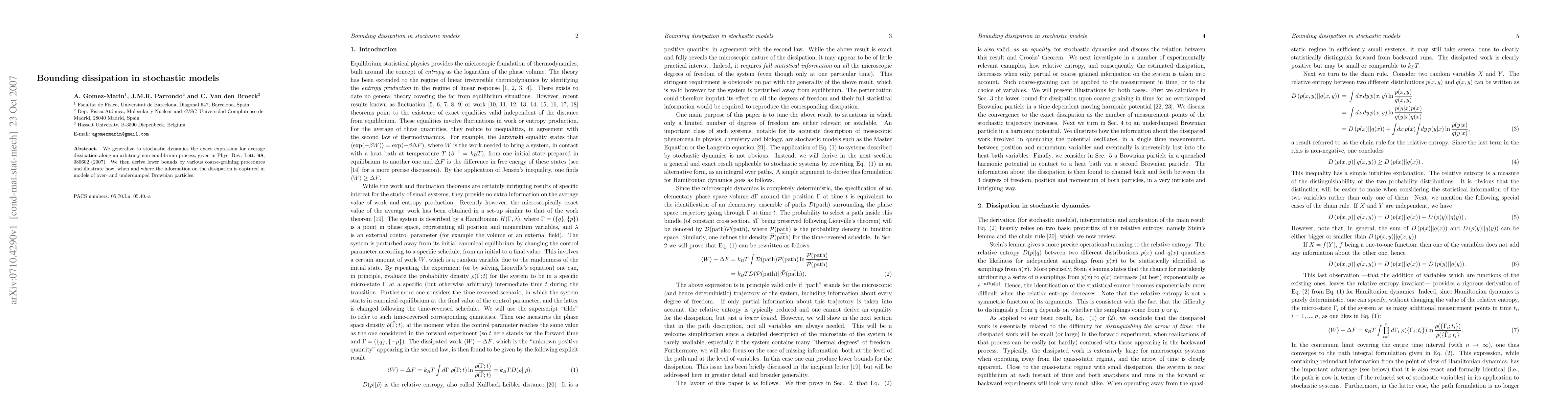 We generalize to stochastic dynamics the exact expression for average dissipation along an arbitrary non-equilibrium process, given in Phys. Rev. Lett. 98, 080602 (2007). We then derive lower bounds by various coarse-graining procedures and illustrate how, when and where the information on the dissipation is captured in models of over- and underdamped Brownian particles.