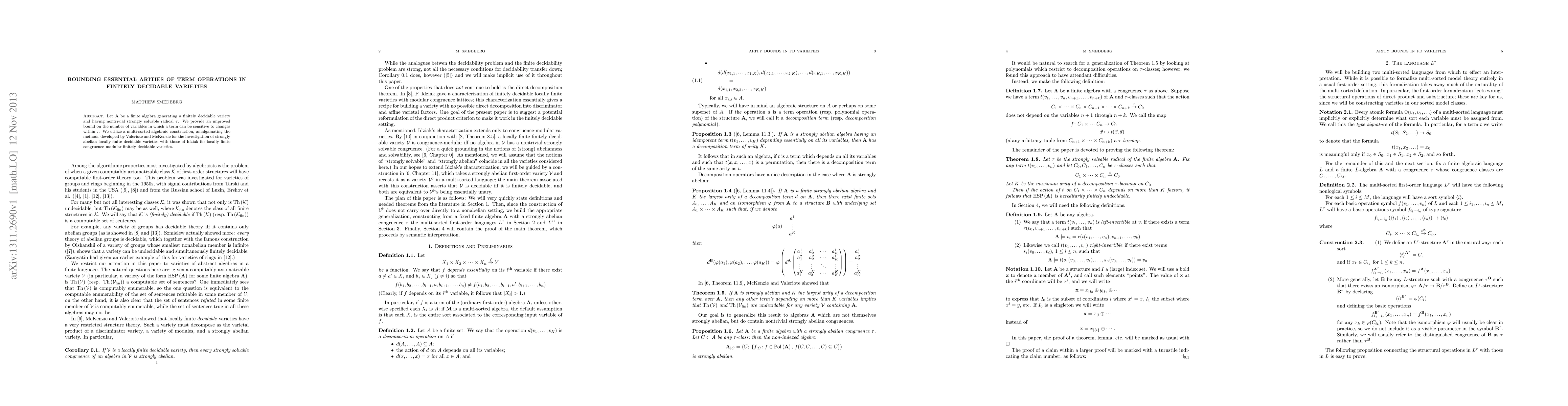 Researchers improve bounds on variables in terms that change within a finitely decidable variety's radical, enabling better understanding of term operations.