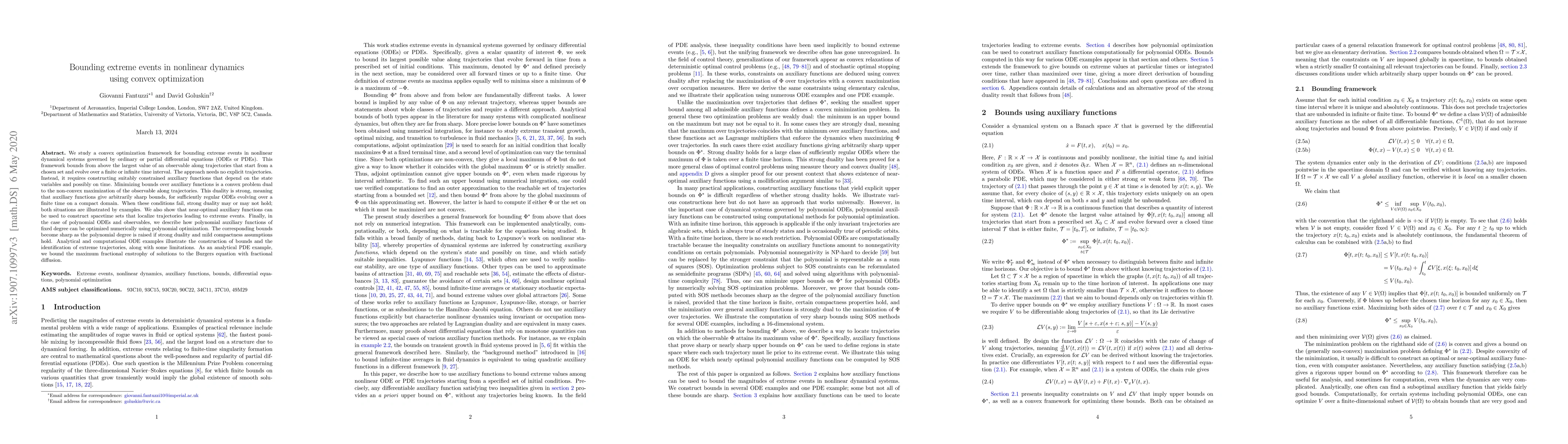 Researchers developed a method to bound extreme events in nonlinear dynamical systems using convex optimization, allowing for sharp bounds without explicit trajectories, with potential applications in identifying critical phenomena.