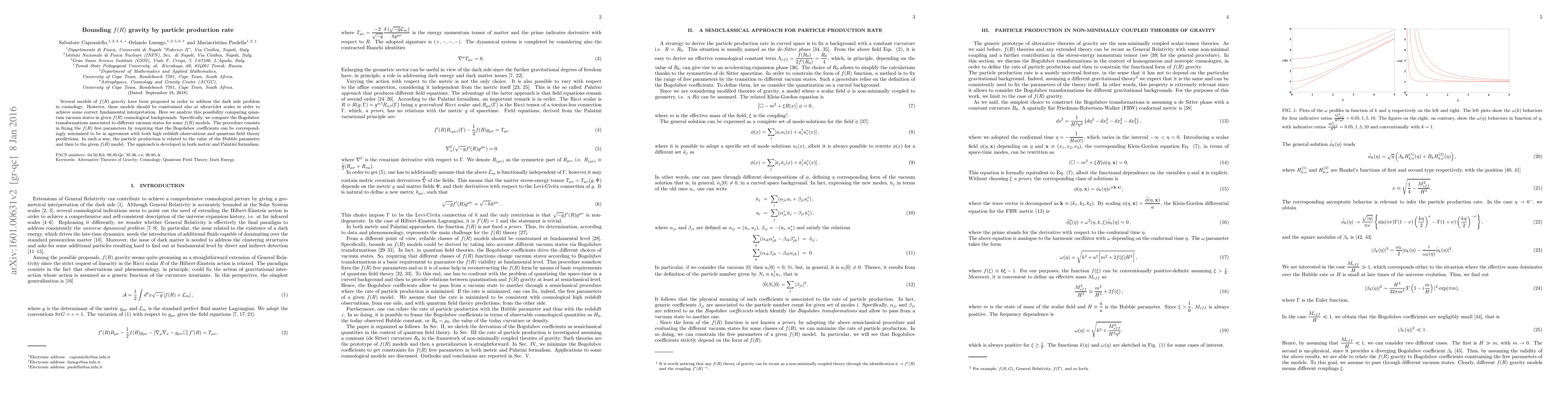 This paper explores constraining $f(R)$ gravity models by analyzing particle production rates in different quantum vacuum states within $f(R)$ cosmological backgrounds. It uses Bogolubov transformations to minimize parameters and align predictions with observational and theoretical data, developing the approach in both metric and Palatini formalisms.