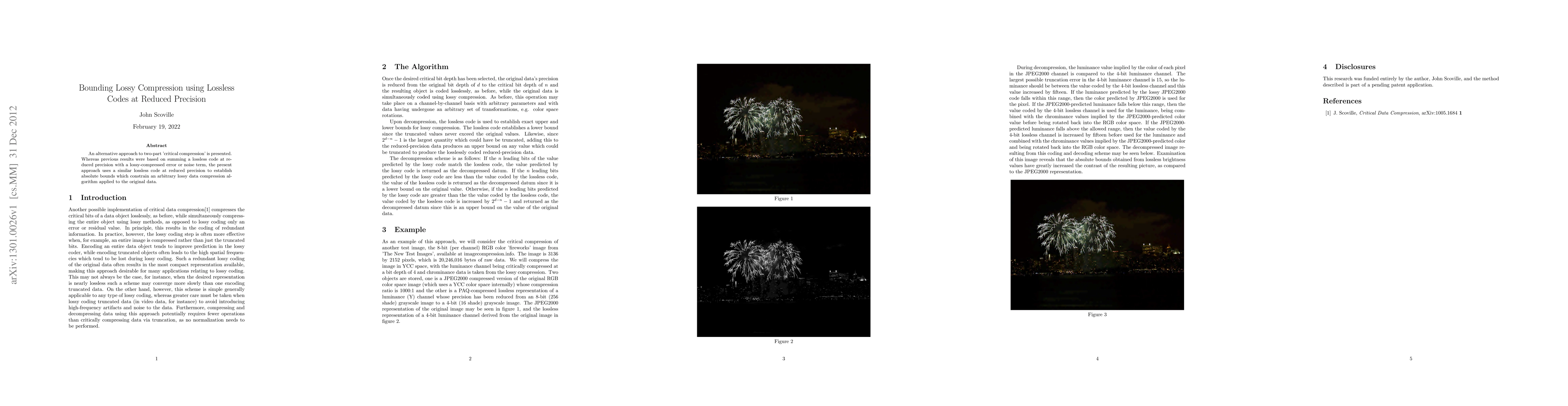 An alternative approach to two-part 'critical compression' is presented. Whereas previous results were based on summing a lossless code at reduced precision with a lossy-compressed error or noise term, the present approach uses a similar lossless code at reduced precision to establish absolute bounds which constrain an arbitrary lossy data compression algorithm applied to the original data.