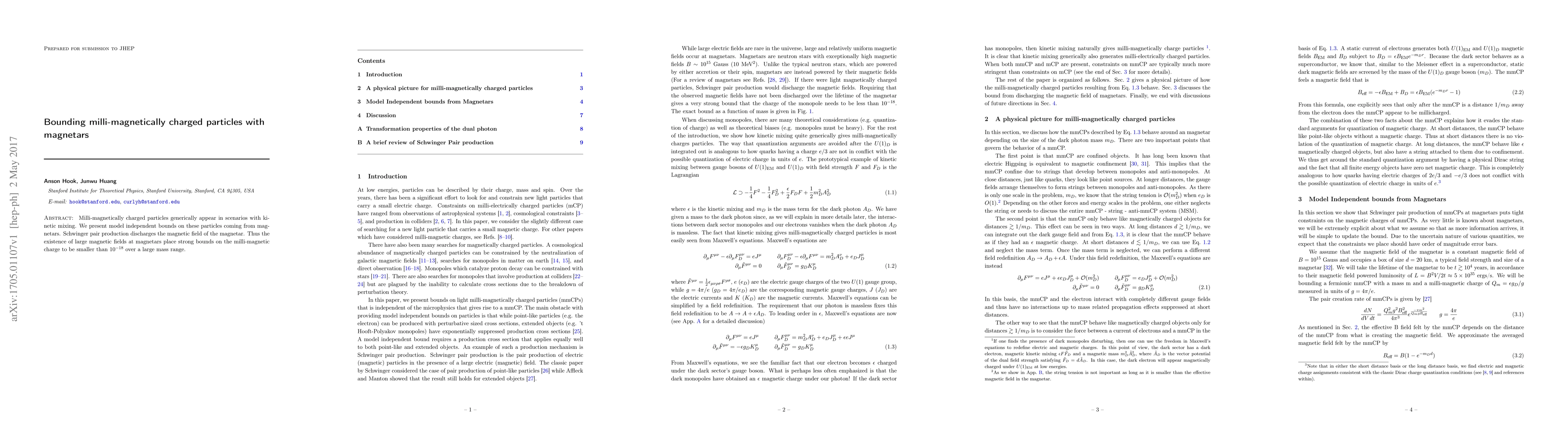 Milli-magnetically charged particles generically appear in scenarios with kinetic mixing. We present model independent bounds on these particles coming from magnetars. Schwinger pair production discharges the magnetic field of the magnetar. Thus the existence of large magnetic fields at magnetars place strong bounds on the milli-magnetic charge to be smaller than $10^{-18}$ over a large mass range.