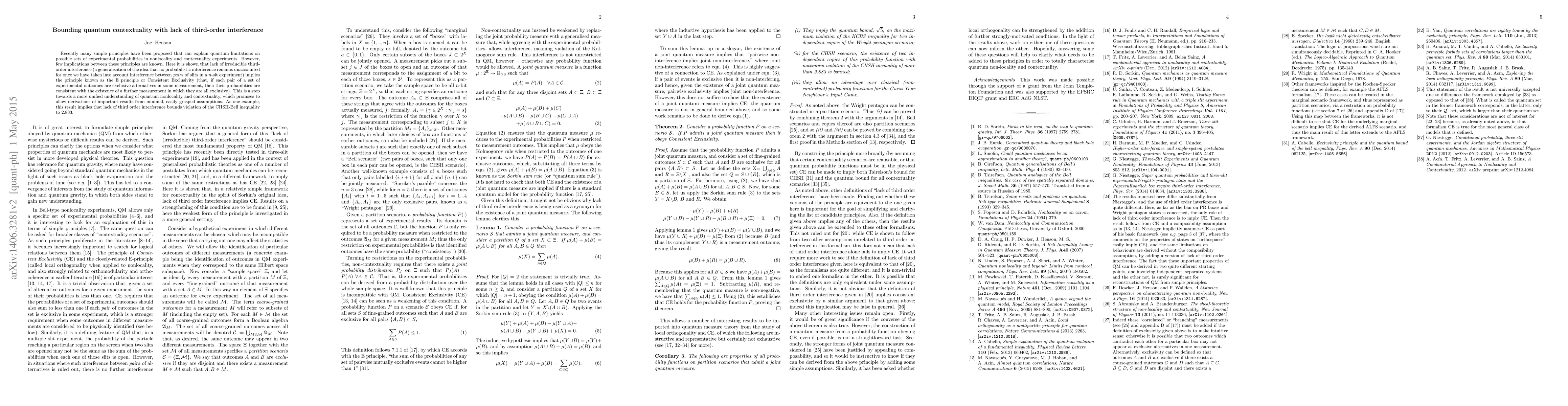 A new principle is proposed that bounds quantum contextuality based on the lack of third-order interference, implying a more unified understanding of nonlocality and contextuality with potential implications for Bell's inequality.