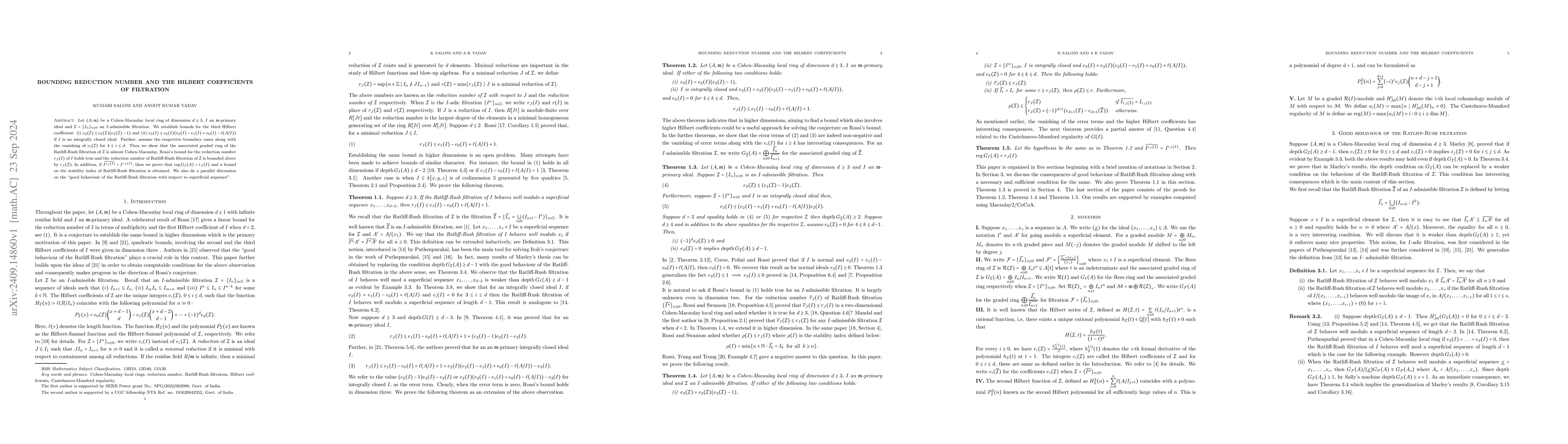This paper establishes bounds for the third Hilbert coefficient of a filtration in a Cohen-Macaulay local ring, showing that $e_3(\mathcal{I}) \leq e_2(\mathcal{I})(e_2(\mathcal{I})-1)$ and $e_3(I) \leq e_2(I)(e_2(I)-e_1(I)+e_0(I)-\ell(A/I))$. It further proves properties of the associated graded ring and bounds the reduction number of the Ratliff-Rush filtration under certain conditions.