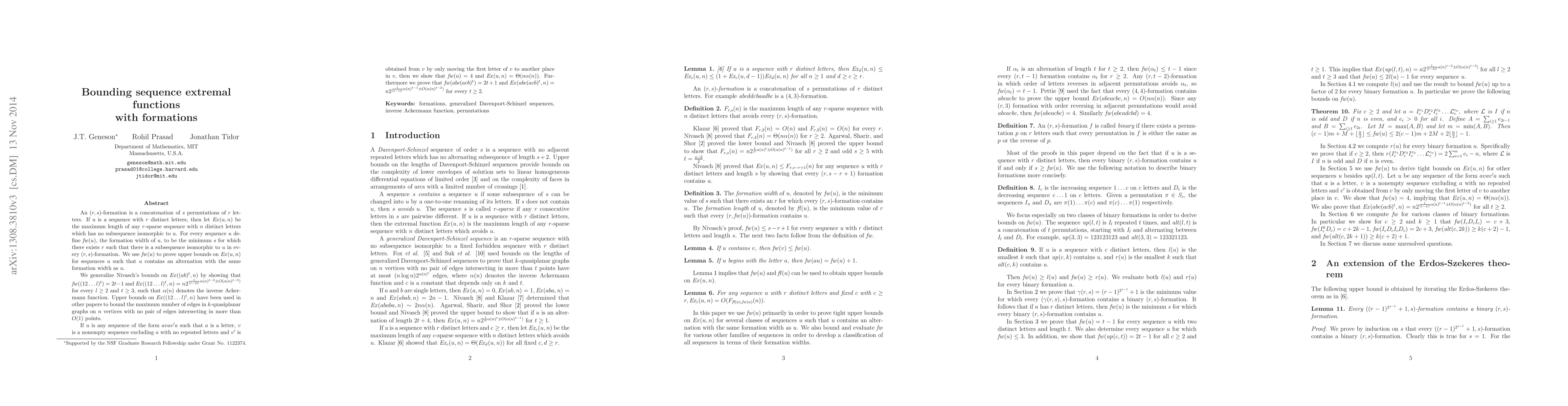 Researchers bound sequence extremal functions with formations, providing upper bounds for maximum lengths of sequences in various formation types.