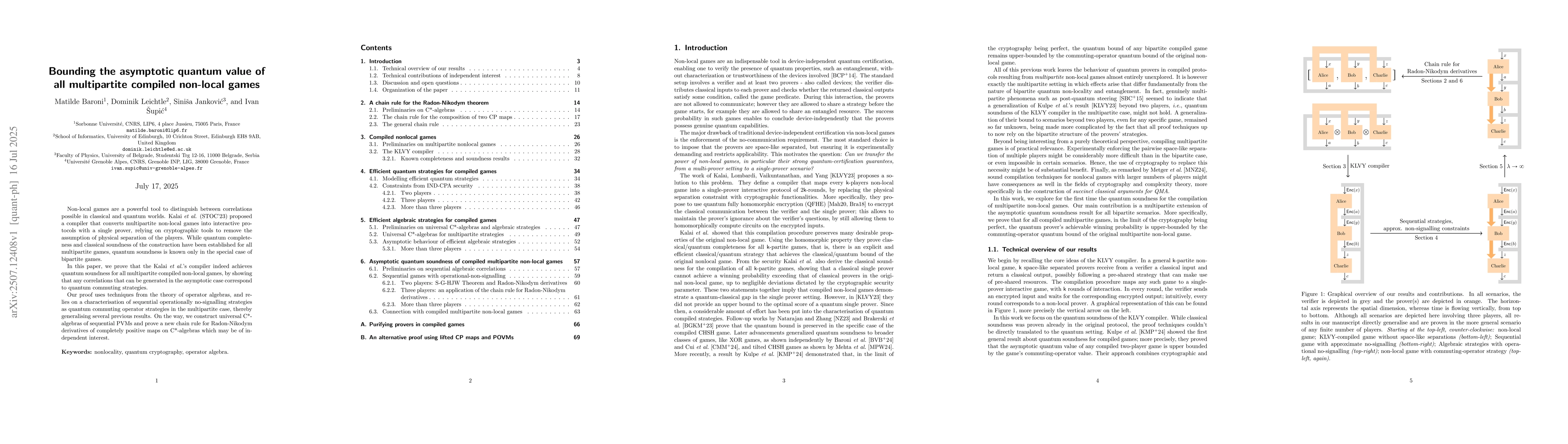The paper's main technical contribution is the proof of quantum soundness for all multipartite compiled non-local games, along with the development of a new chain rule for completely positive maps on C*-algebras.