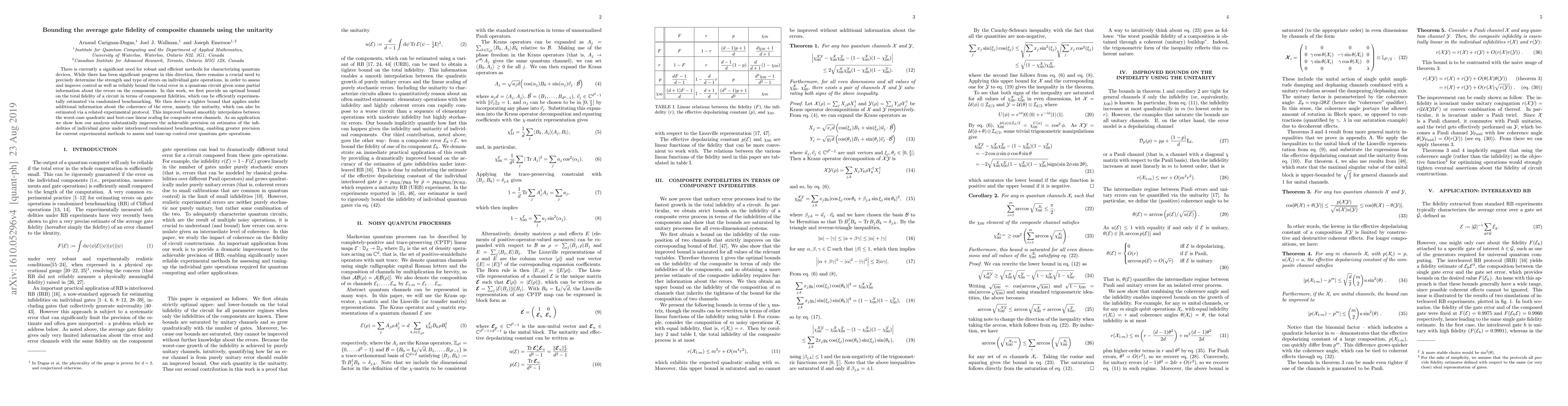 There is currently a significant need for robust and efficient methods for characterizing quantum devices. While there has been significant progress in this direction, there remains a crucial need to precisely determine the strength and type of errors on individual gate operations, in order to assess and improve control as well as reliably bound the total error in a quantum circuit given some partial information about the errors on the components. In this work, we first provide an optimal bound on the total fidelity of a circuit in terms of component fidelities, which can be efficiently experimentally estimated via randomized benchmarking. We then derive a tighter bound that applies under additional information about the coherence of the error, namely, the unitarity, which can also be efficiently estimated via a related experimental protocol. This improved bound smoothly interpolates between the worst-case quadratic and best-case linear scalings for composite error channels. As an application we show how our analysis substantially improves the achievable precision on estimates of the error rates of individual gates under interleaved randomized benchmarking, enabling greater precision for current experimental methods to assess and tune-up control over quantum gate operations.