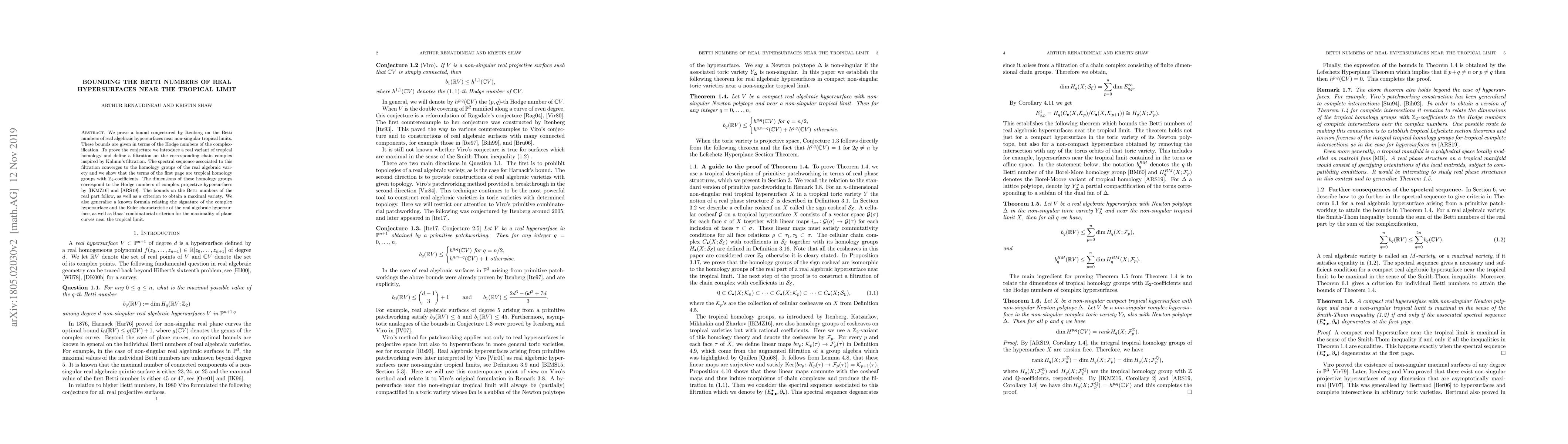 This paper proves a conjecture by Itenberg on bounding the Betti numbers of real algebraic hypersurfaces near non-singular tropical limits, using a real variant of tropical homology and a filtration inspired by Kalinin's method. The bounds are expressed in terms of the Hodge numbers of the complexification.