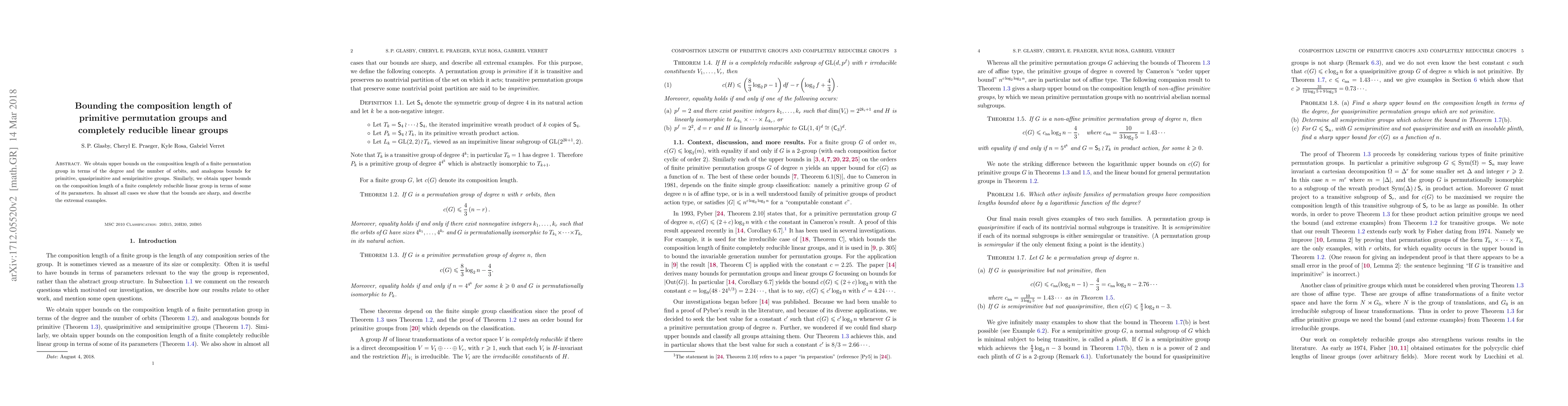 This paper provides upper bounds on the composition length of finite permutation groups and completely reducible linear groups, relating these bounds to group parameters like degree and number of orbits. The authors demonstrate that these bounds are often sharp, with detailed descriptions of extremal examples.