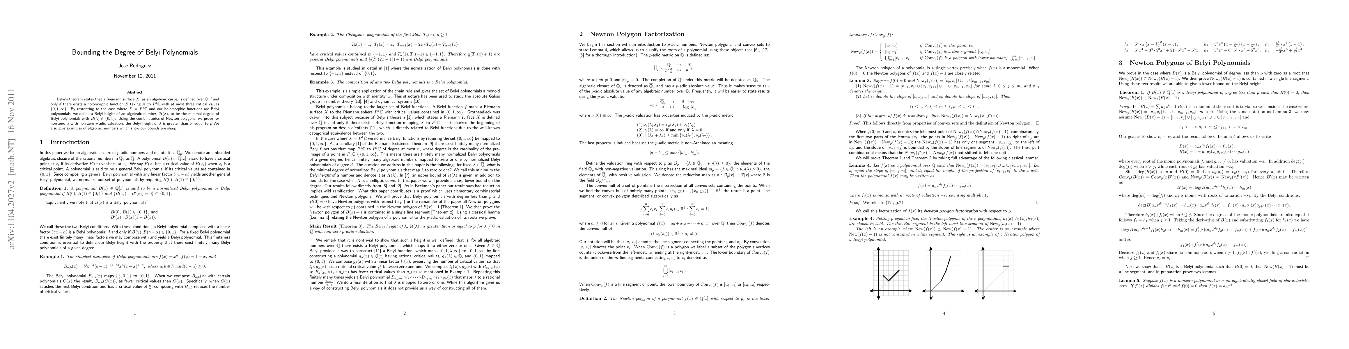 This paper proves that for non-zero algebraic numbers with non-zero p-adic valuation, the Belyi height—the minimal degree of Belyi polynomials mapping the number to zero or one—must be greater than or equal to p. It uses the combinatorics of Newton polygons to establish this result and provides examples demonstrating the sharpness of the bounds.