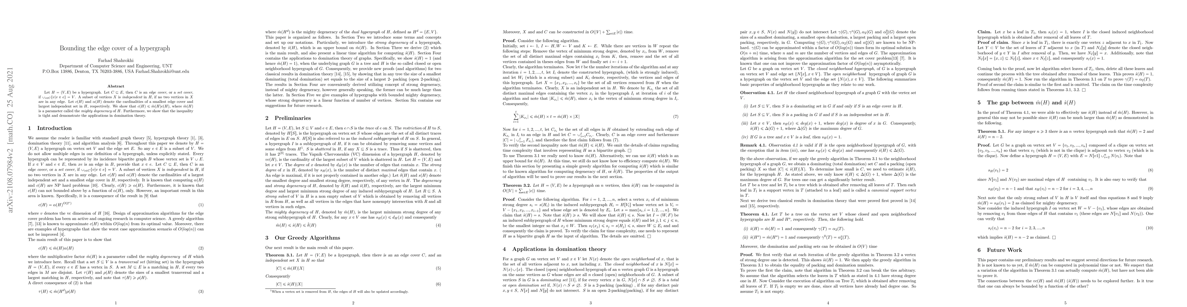 This paper provides a bound for the edge cover of a hypergraph, showing that the size of the smallest edge cover is at most the mighty degeneracy of the hypergraph multiplied by the edge cover's cardinality. The authors demonstrate that this bound is tight and discuss its applications in the context of domination theory.