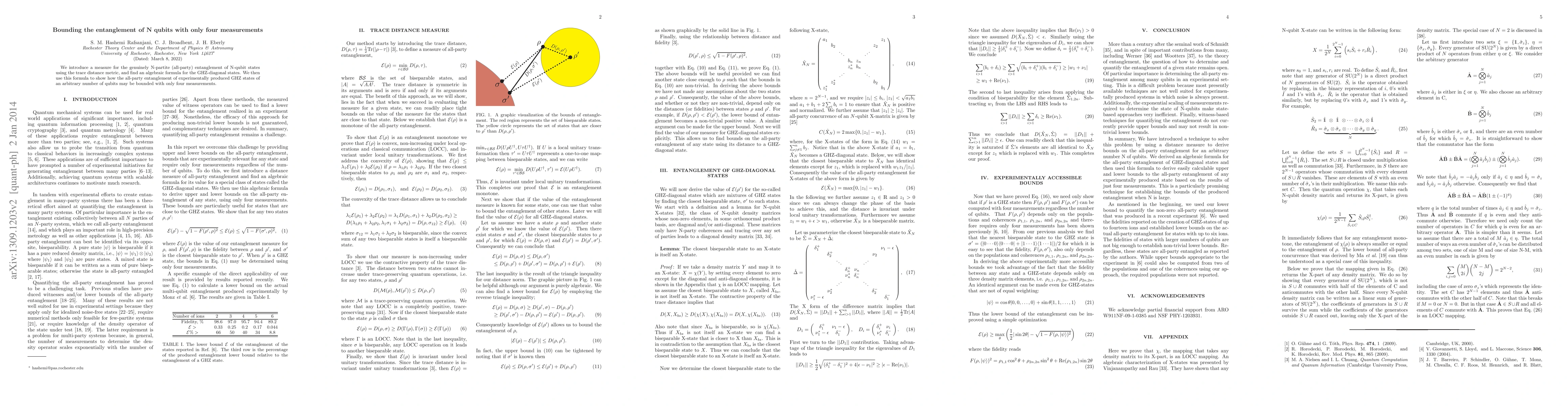 This paper proposes a new measure for the entanglement of N-qubit states based on the trace distance metric and derives an algebraic formula for GHZ-diagonal states. It demonstrates that the all-party entanglement of experimentally produced GHZ states can be bounded using just four measurements.