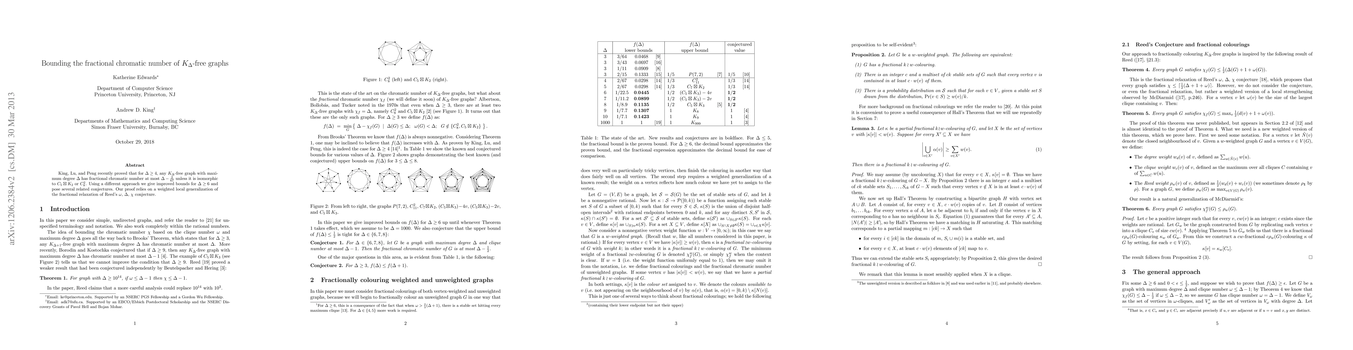 King, Lu, and Peng recently proved that for $\Delta\geq 4$, any $K_\Delta$-free graph with maximum degree $\Delta$ has fractional chromatic number at most $\Delta-\tfrac{2}{67}$ unless it is isomorphic to $C_5\boxtimes K_2$ or $C_8^2$. Using a different approach we give improved bounds for $\Delta\geq 6$ and pose several related conjectures. Our proof relies on a weighted local generalization of the fractional relaxation of Reed's $\omega$, $\Delta$, $\chi$ conjecture.