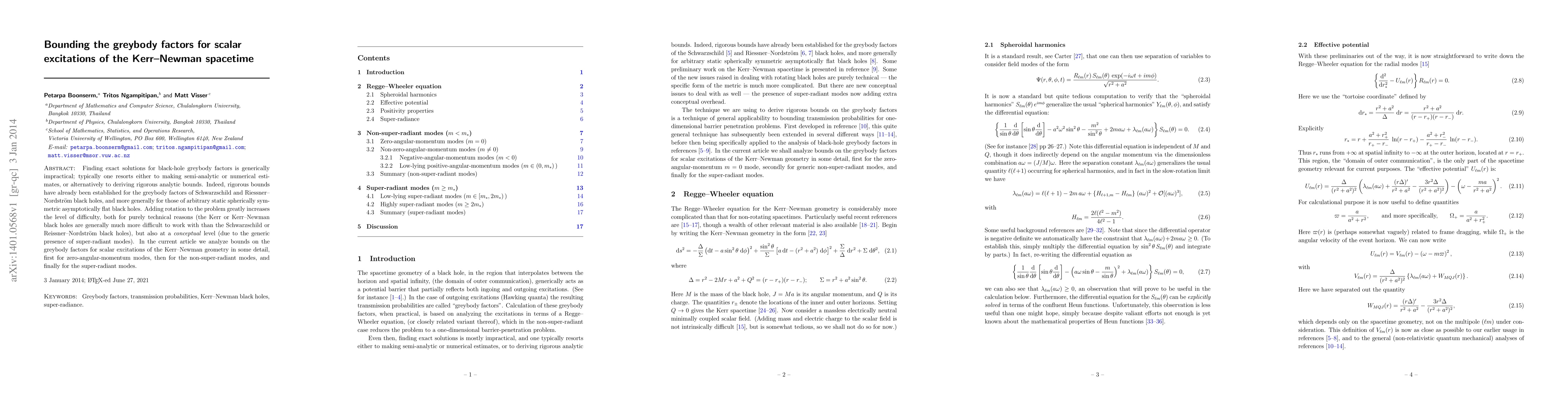 Finding exact solutions for black-hole greybody factors is generically impractical; typically one resorts either to making semi-analytic or numerical estimates, or alternatively to deriving rigorous analytic bounds. Indeed, rigorous bounds have already been established for the greybody factors of Schwarzschild and Riessner-Nordstrom black holes, and more generally for those of arbitrary static spherically symmetric asymptotically flat black holes. Adding rotation to the problem greatly increases the level of difficulty, both for purely technical reasons (the Kerr or Kerr-Newman black holes are generally much more difficult to work with than the Schwarzschild or Reissner-Nordstrom black holes), but also at a conceptual level (due to the generic presence of super-radiant modes). In the current article we analyze bounds on the greybody factors for scalar excitations of the Kerr-Newman geometry in some detail, first for zero-angular-momentum modes, then for the non-super-radiant modes, and finally for the super-radiant modes.